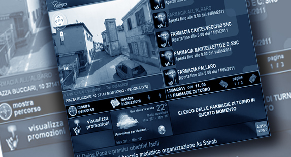 La Vetrina Multimediale di WinSpotWeb consente di catturare l'attenzione dei clienti e di fornire loro informazioni professionali e di servizio pubblico 24 ore su 24. Chiunque potrà accedere, attraverso un’innovativa pellicola touch screen applicabile sulla vetrina a tutte le informazioni che desidera con un semplice tocco, ricercando le farmacie di turno, i centri specialistici o addirittura effettuare la prenotazione del prodotto desiderato.